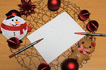 Als erstes malt Ihr auf weißem Papier die Umrisse von einem Geweih und einer Nase. Anschließend könnt Ihr diese nach Lust und Laune ausmalen, oder Ihr benutzt direkt farbiges Papier.