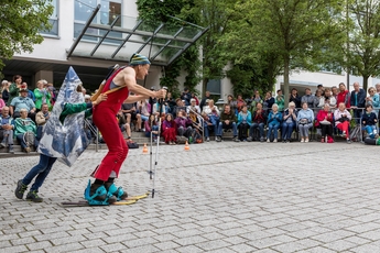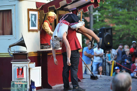 Das finnische Zirkusduo Kate & Pasi mit ihrer Performance "Suhde".